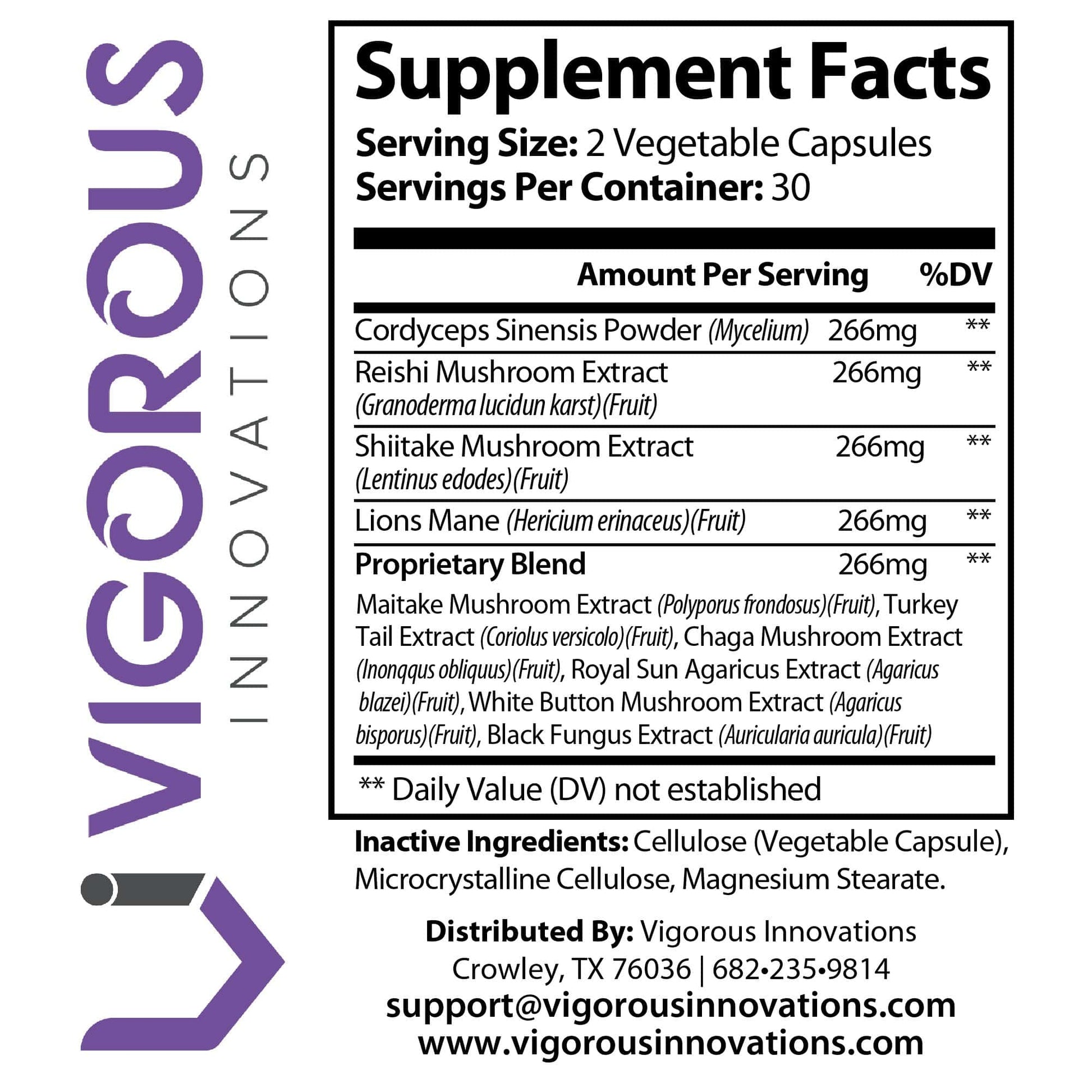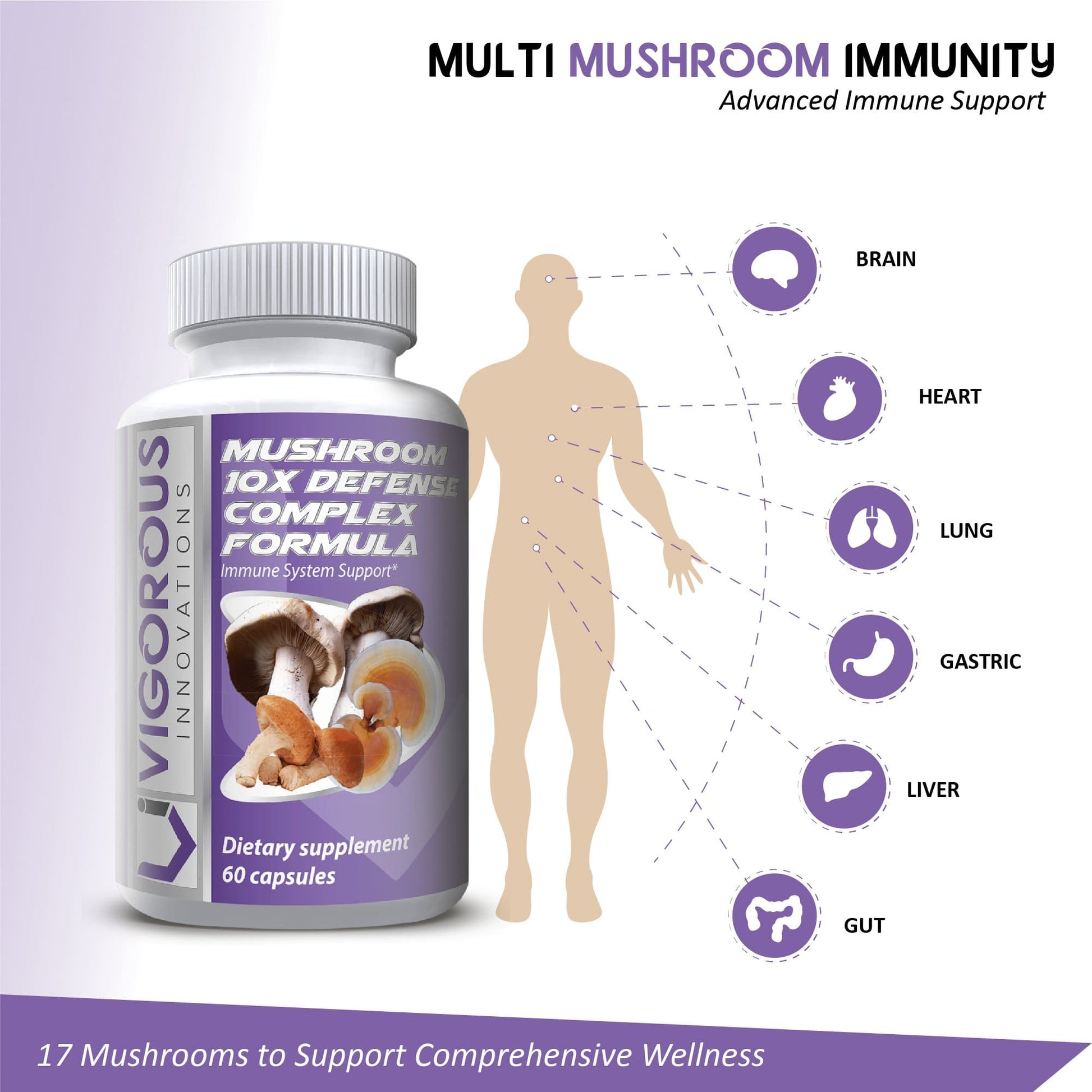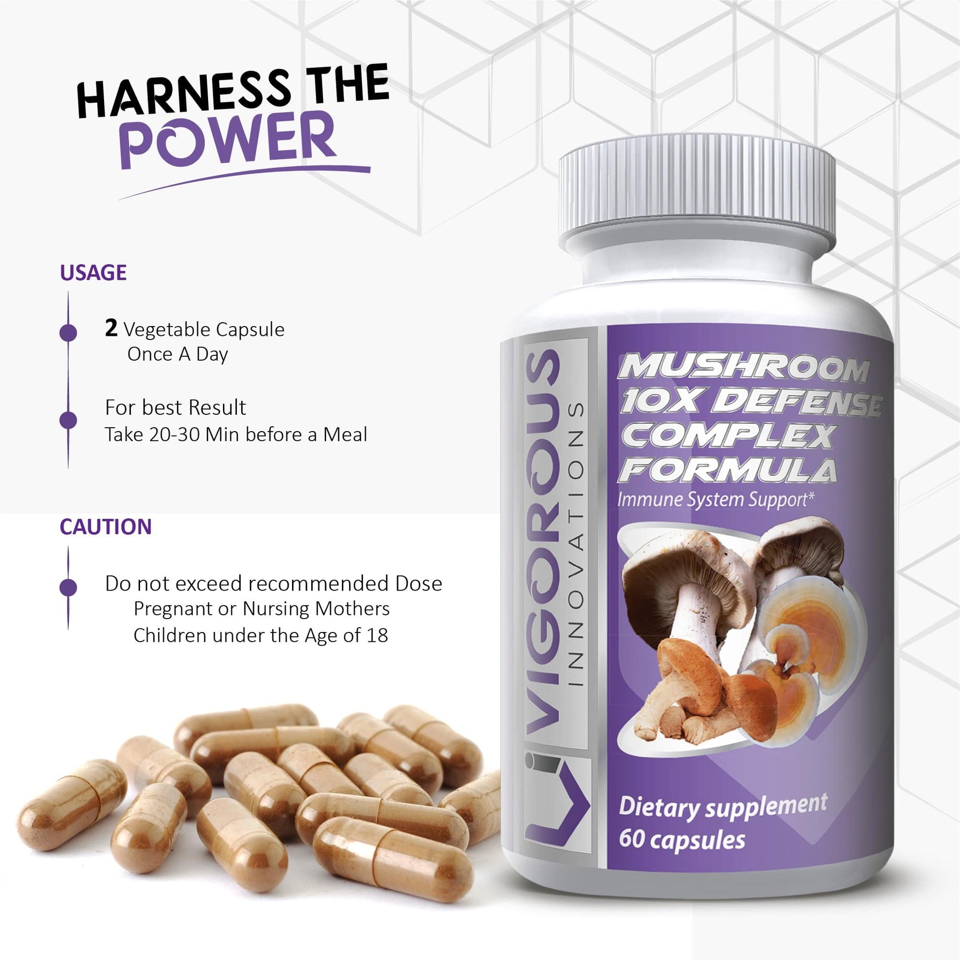 Vigorous Innovations Mushroom 10X Defense Complex Formula - Natural Immune System Support